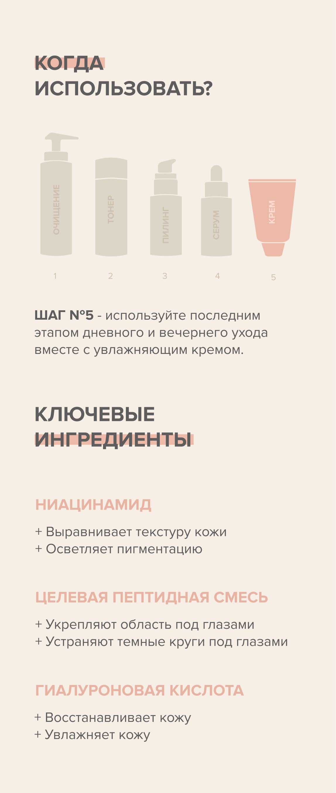 Содержит пептиды, растительные антиоксиданты, такие как экстракт виноградных косточек, корень солодки и зеленый чай, ниацинамид и гиалуроновую кислоту для всесторонней работы над преждевременными признаками старения, включая тусклость, неровный рельеф и пигментацию.